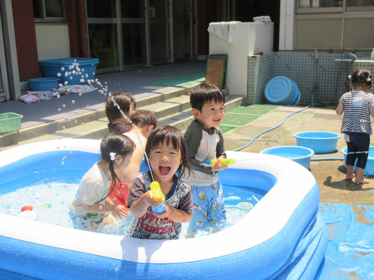 はじめの頃、はだかっぽだった子もちゃんと水着着られるようになりました。