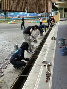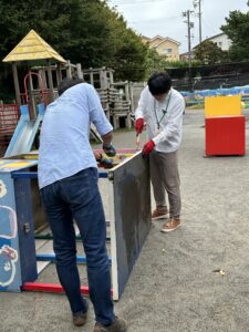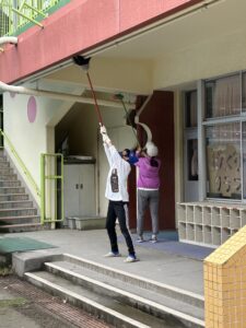 25日(土)、休日参観がありました。その日の午後は有志の保護者の皆さんが園内整備活動にご参加くださり、普段我々職員だけではなかなか行き届かないところのお手伝いをしていただきました。