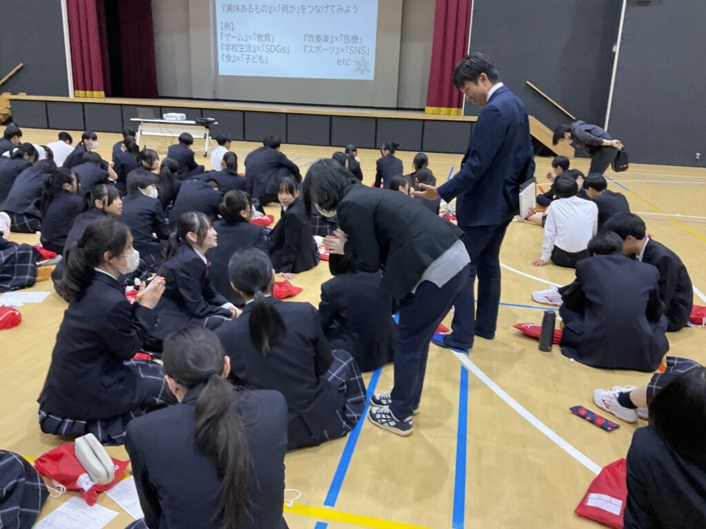 自分の興味・関心があることをできるだけたくさん見つけ、そのうちの2つを組み合わせると何が生まれるか?正解のない問いに戸惑いつつも、先生たちも一緒に取り組み、みんなで盛り上がりながら進めることができました。