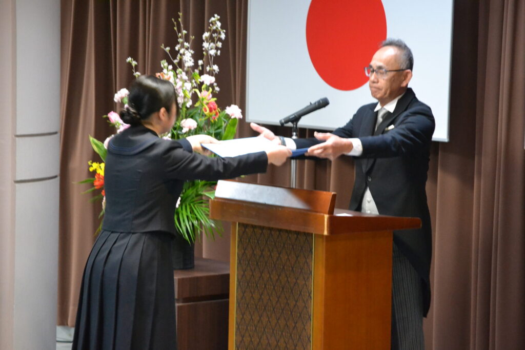 春の気配が感じられる穏やかな日差しの中、卒業生が壇上で証明書を受け取り、保護者や来賓の方々、教職員の温かな祝福に包まれながら、新たな門出を迎えました。
