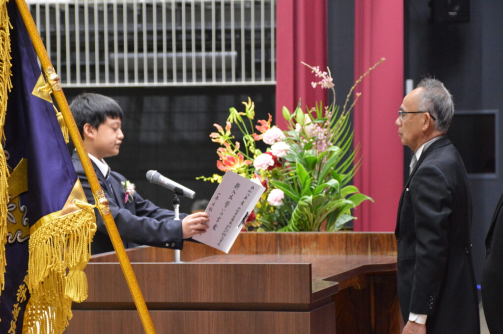 式では、学校長から新入生への激励の言葉が述べられ、新たな学びへの期待に満ちた表情が印象的でした。これから始まる学校生活の中で、一人ひとりが自らの目標に向かって大きく成長していくことを願っています。
