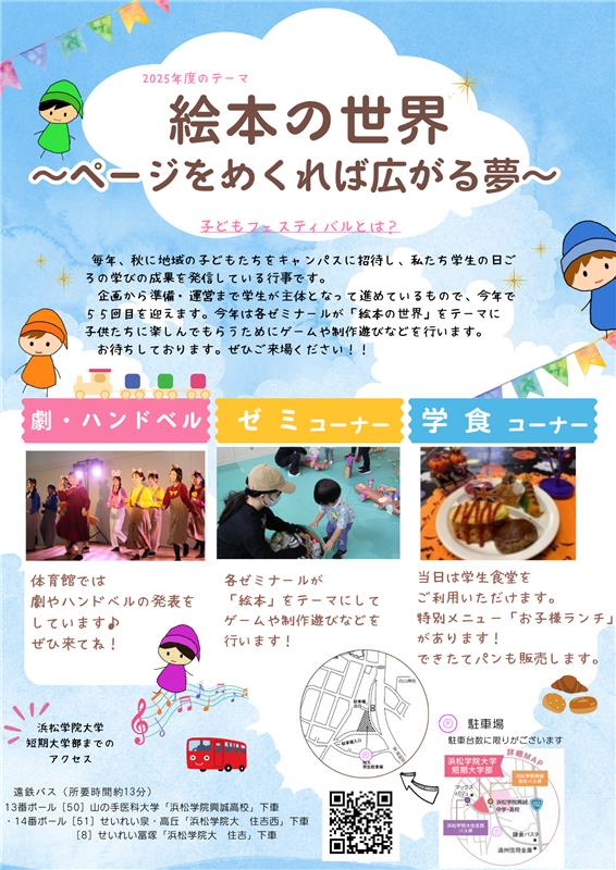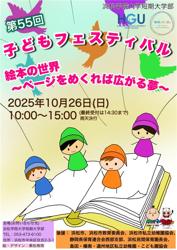 浜松学院大学短期大学部では、10/26(日)に、第55回【子どもフェスティバル】を開催します。