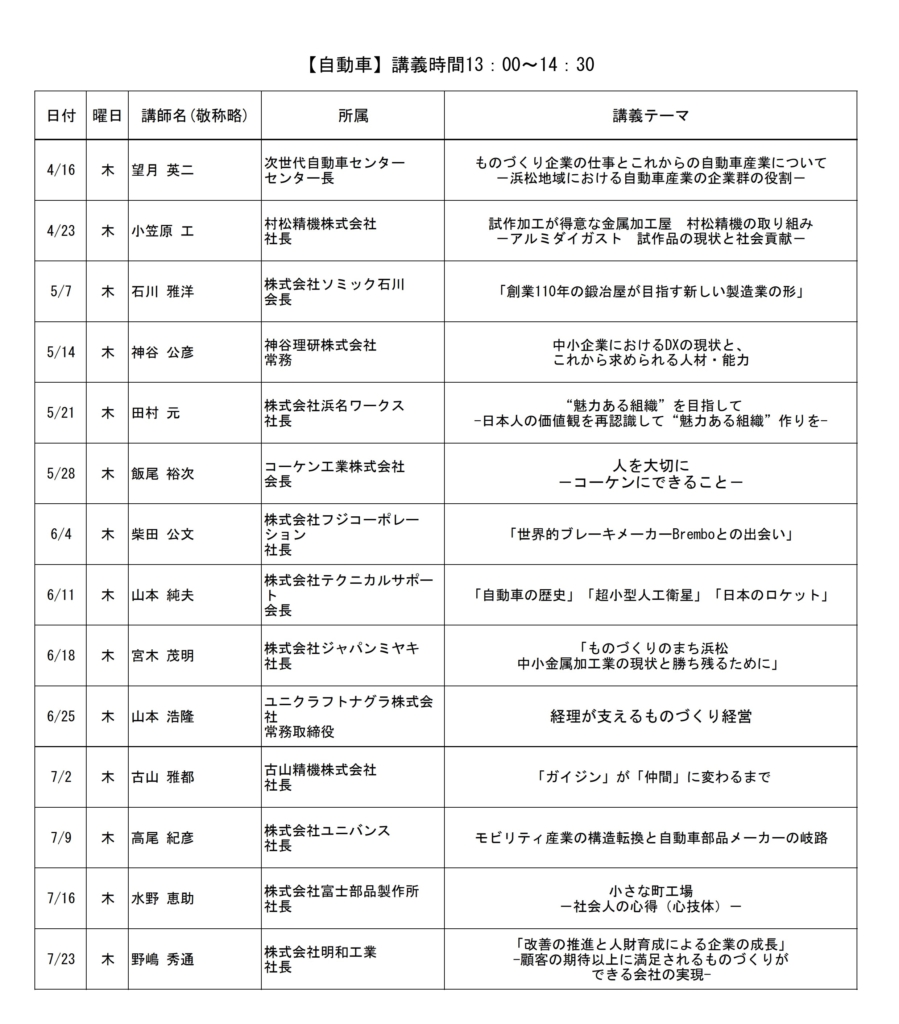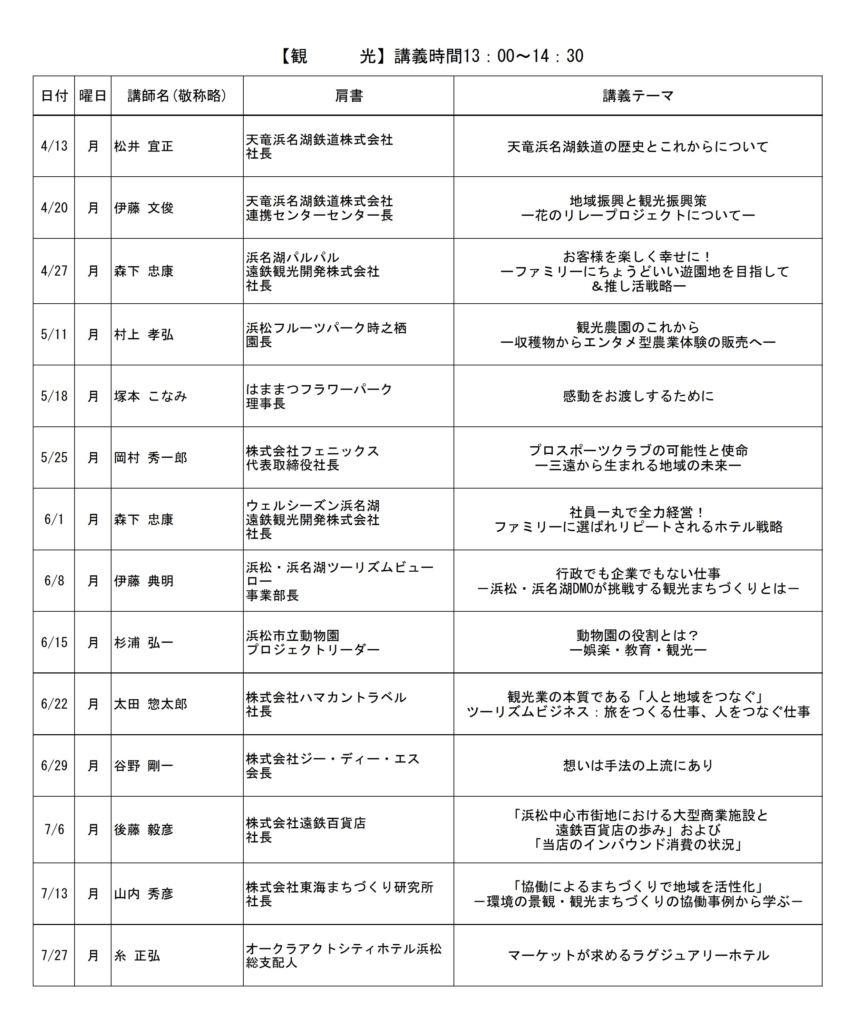 浜松学院大学 地域経営学科では、各界の第一線で活躍する方々をお招きして、事業理念や活動状況、将来への展望などを語っていただく「地域経営学科実践講座」を開講します。