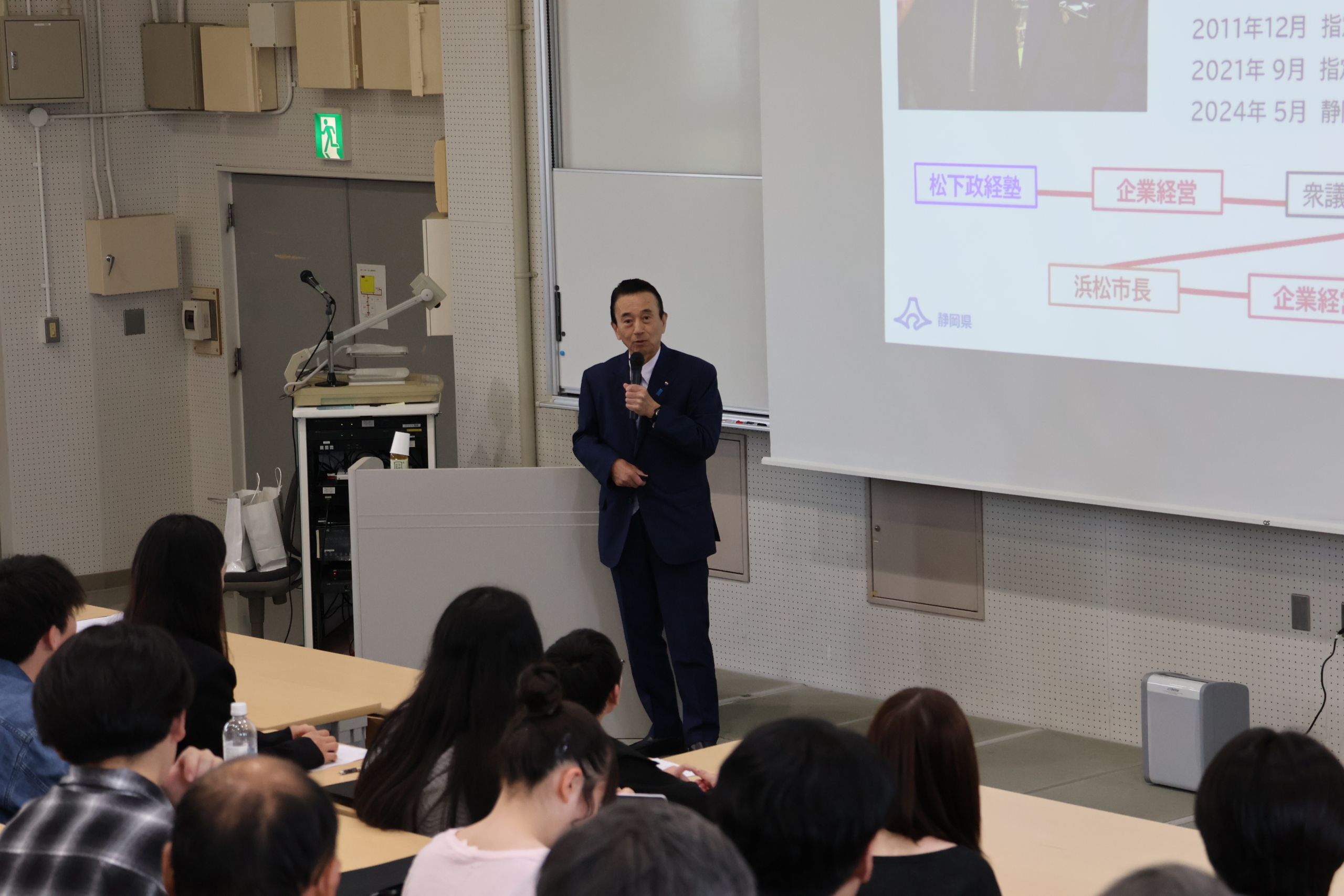 4/15(水)地域経営学科実践講座において、鈴木康友県知事に「静岡県の魅力について」をテーマに御講演いただきました。