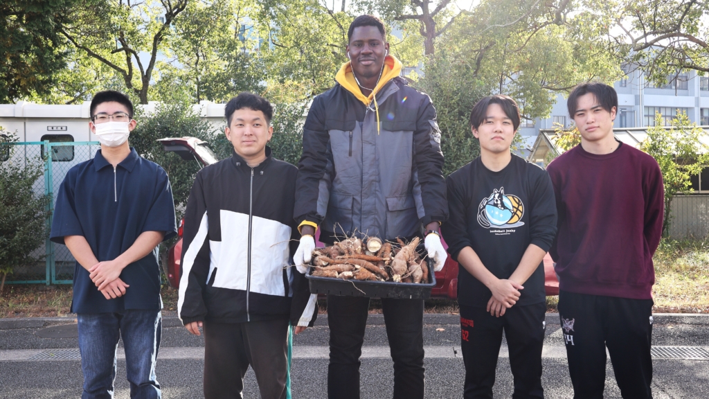 光安ゼミの4年生がキャンパス内で栽培したキャッサバ芋の収穫をしました