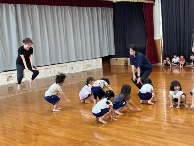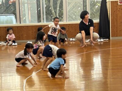 たんぽぽ組ちゃんたち、よーく見ているその先は…白組さんのリズム運動なんです。たんぽぽちゃんも明日(11日)からリズム運動が始まるので、白組さんの様子をみせてもらっていました。