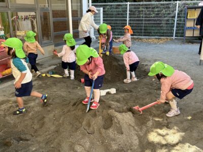 音楽会の活動の合間に…黄組さんが大きな大きな砂の山を作っていましたよ…