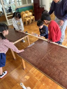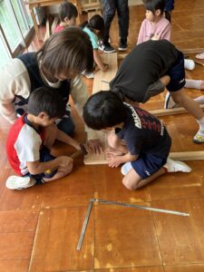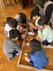 この活動は現代において言われるところの「プログラミング活動」。物の本質を捉えること、自分で考えること、試すこと、組み立てること、失敗と成功を重ねること、などなど…それらすべてを取り入れたまさに「プログラミング的思考」の土台となる人間力(生きる力)を育む活動です。これに加えて友だちと協力しなければ成しえることができず、コミュニケーション能力さえも培うことができるすばらしい活動!(と、自負しております(^^)/)