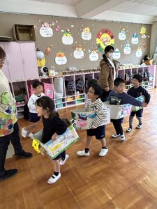 11月の付属幼稚園は電車作り、電車ごっこ!