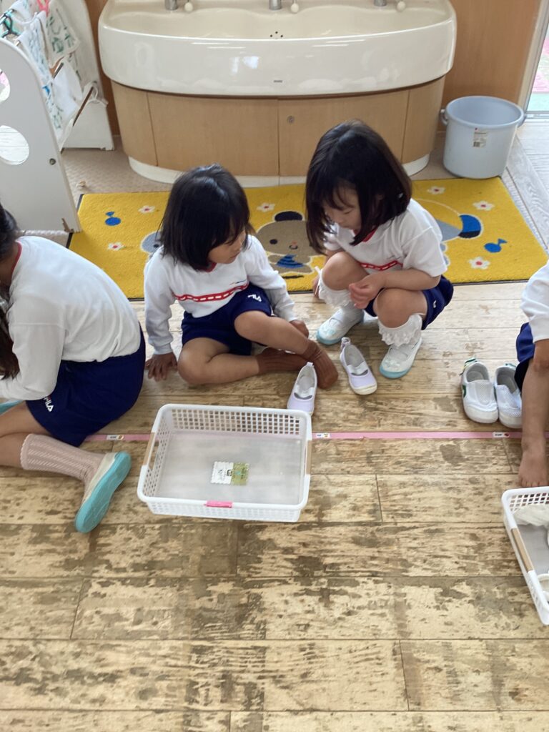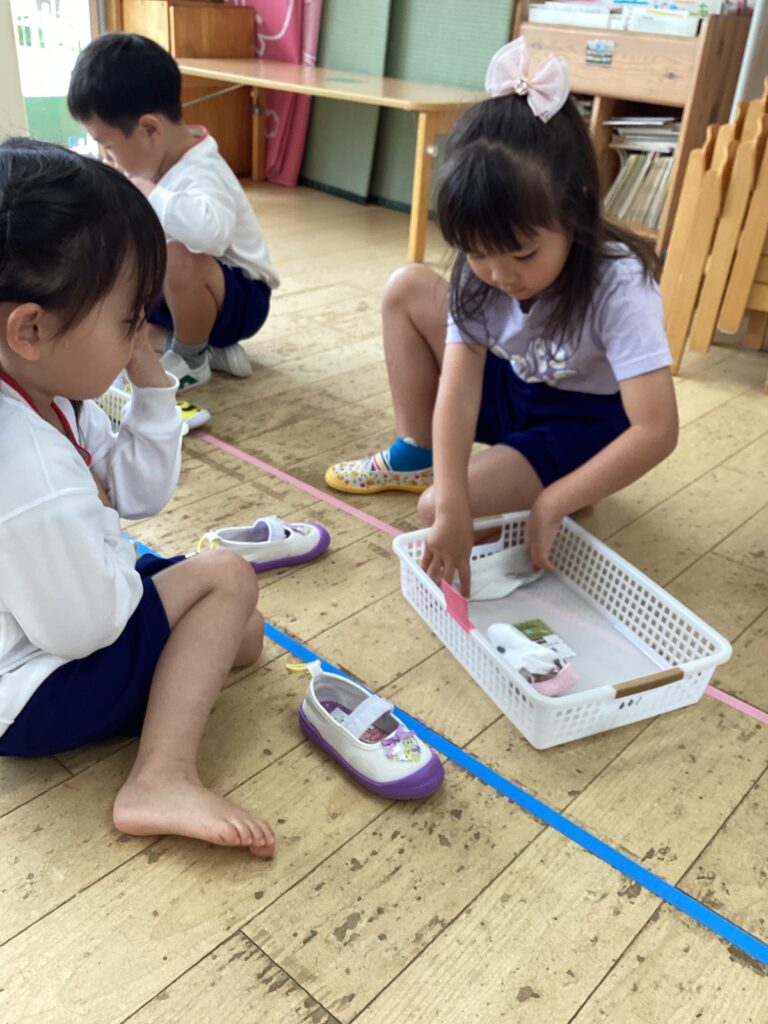 👕服の着脱や畳むところを一緒にやったり、身長や体重を測る身長・体重計を教えてくれたりしてくれて安心して取り組むことができました。