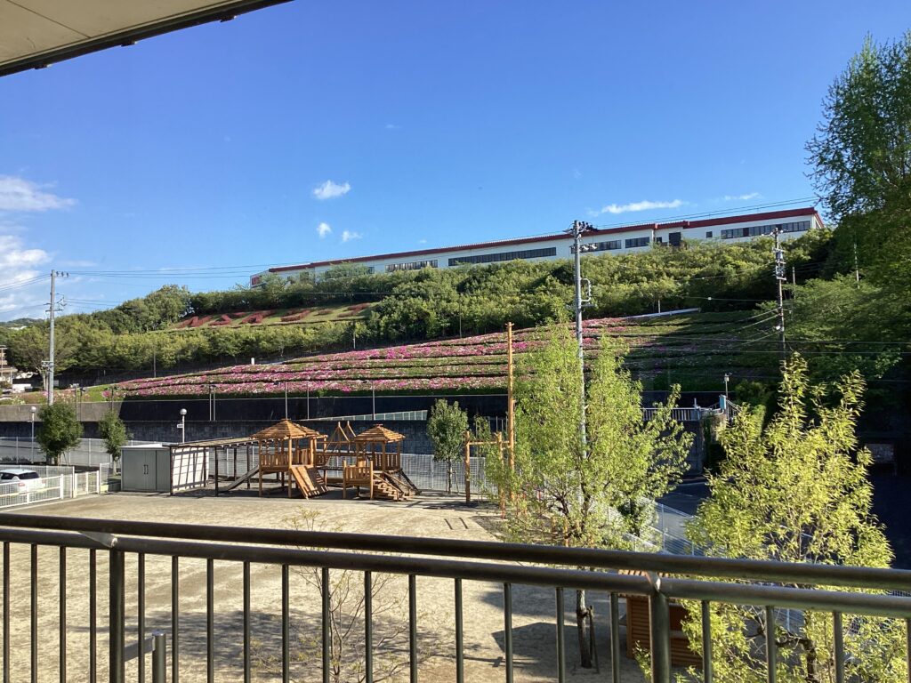 あお組からつつじがとても綺麗に見えるようになりました。